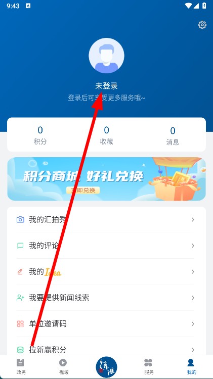 3、在我的頁面,點(diǎn)擊未登錄區(qū)域。