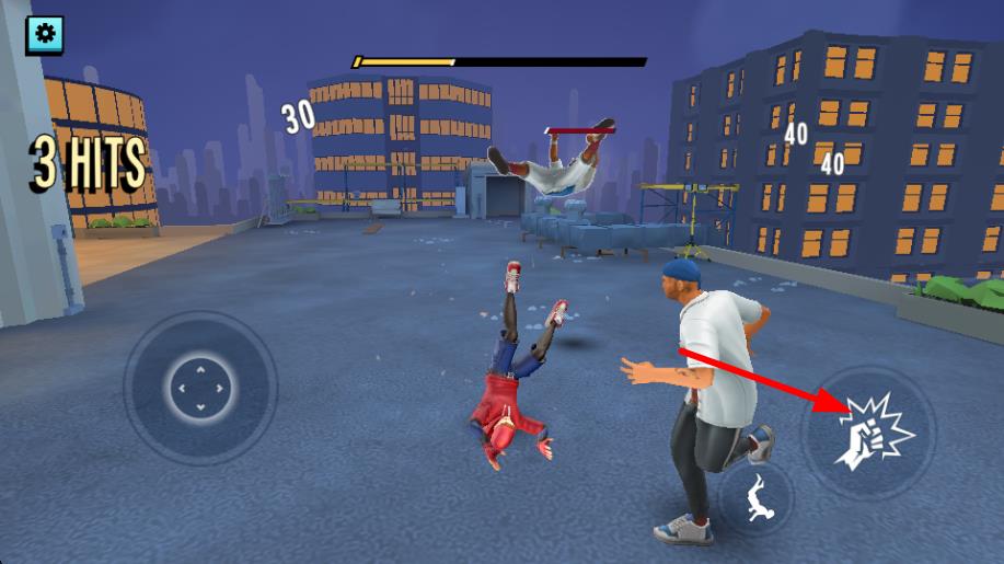 1、點擊右側攻擊按鍵,可對敵人發(fā)起拳擊攻擊,造成傷害,積累連擊數(shù)以提升了戰(zhàn)斗的效果。