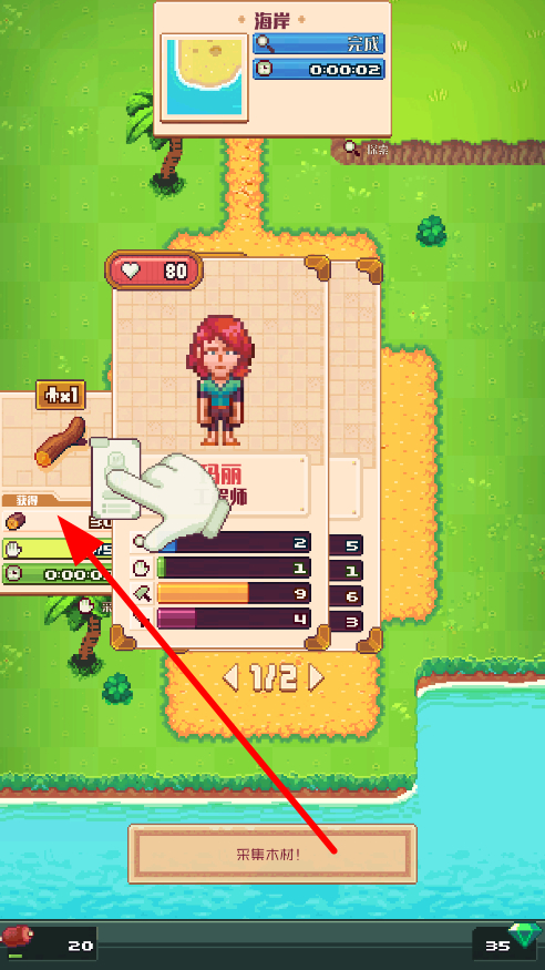 1、海岸等場景,進(jìn)行采集操作,比如采集木材,按照提示點(diǎn)擊相關(guān)區(qū)域,獲取木材等資源,這些資源可用于后續(xù)生火等任務(wù),推進(jìn)冒險(xiǎn)進(jìn)程。