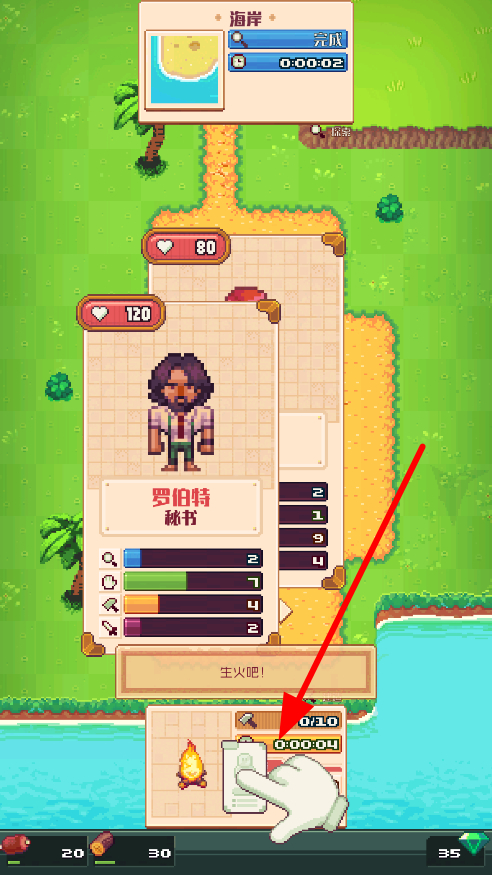 3、根據(jù)任務(wù)提示,進(jìn)行生火等操作,點(diǎn)擊手指滑動(dòng)派遣,開展生火流程,完成生火任務(wù),能為幸存者們帶來溫暖,振奮精神,也能解鎖更多建筑物。