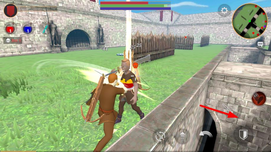 1、點(diǎn)擊右側(cè)盾牌按鍵,可開(kāi)啟防御姿態(tài),減少敵人攻擊造成的傷害,提升生存能力。