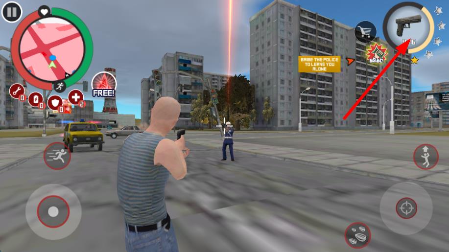4、點(diǎn)擊右上角槍械按鍵,可切換武器為槍械,在戰(zhàn)斗中有效消滅敵人,提升戰(zhàn)斗能力。
