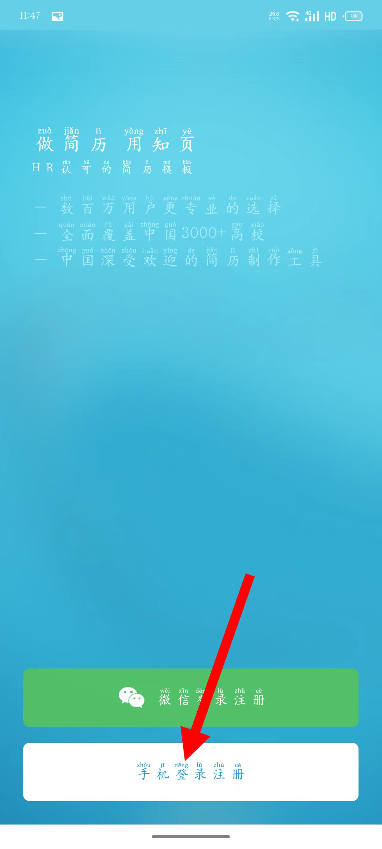 2、進(jìn)入登錄注冊頁面后,點(diǎn)擊手機(jī)登錄注冊。