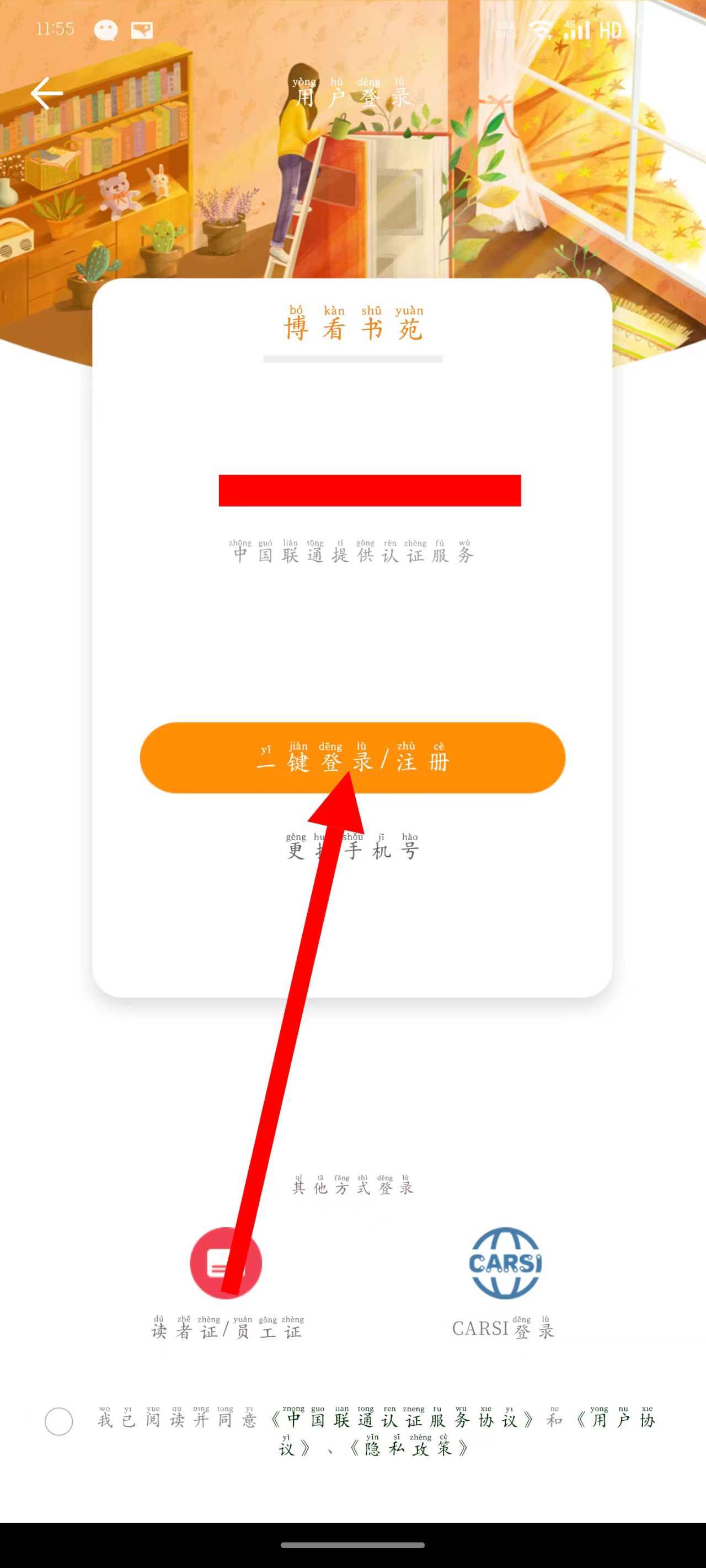 3、進(jìn)入用戶登錄頁面后,點擊一鍵登錄注冊。