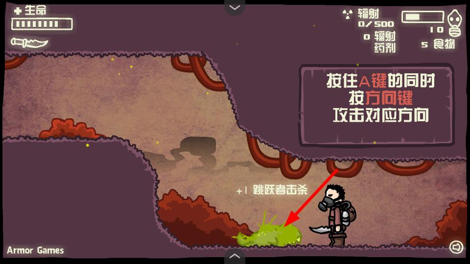 1、按住A鍵的同時(shí)按方向鍵,可向?qū)?yīng)方向發(fā)起攻擊,消滅怪物,保障自身安全。