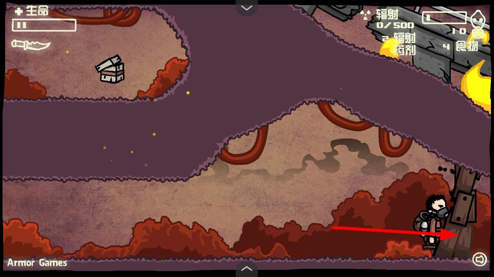 3、朝著箭頭指向的區(qū)域移動,可探索新的場景,尋找生存資源或任務(wù)目標(biāo)。