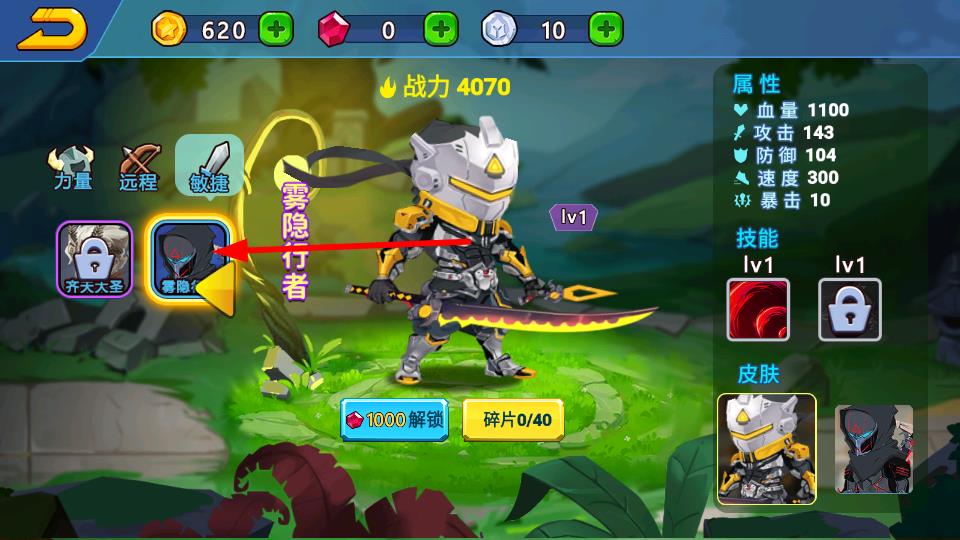 1、選擇霧隱行者的英雄,其屬于敏捷型角色,具備高速度和暴擊屬性,適合靈活的作戰(zhàn)。