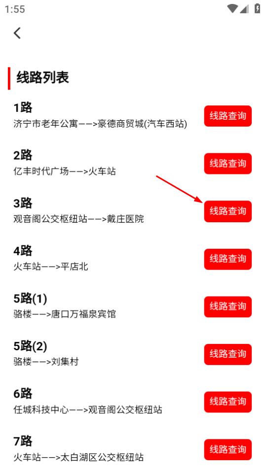4、在城市公交的線路列表中,選擇想要查詢的線路,點擊對應的線路查詢按鈕即可。