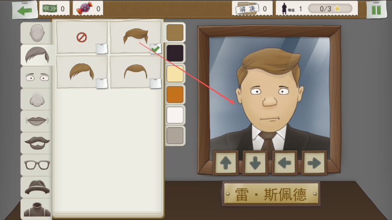 1、開始游戲先進行人物形象設(shè)計,從左側(cè)選擇發(fā)型等外貌特征給雷·斯佩德裝扮。