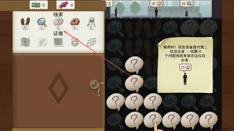 4、完成腳印收集后,按提示開始收集其他類型線索,如問題線索,去采訪下一位目擊者。