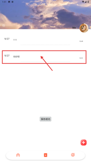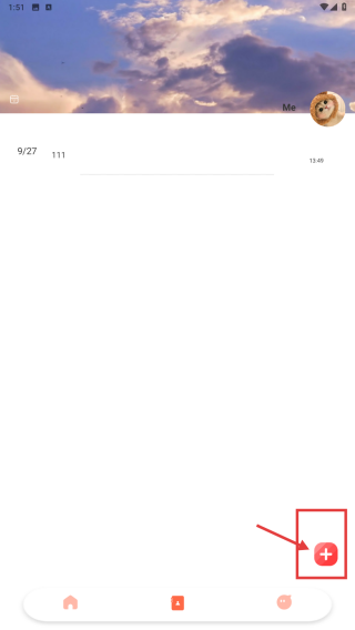 2、在日記頁(yè)面,點(diǎn)擊右下角紅色+號(hào),進(jìn)入寫日記界面。
