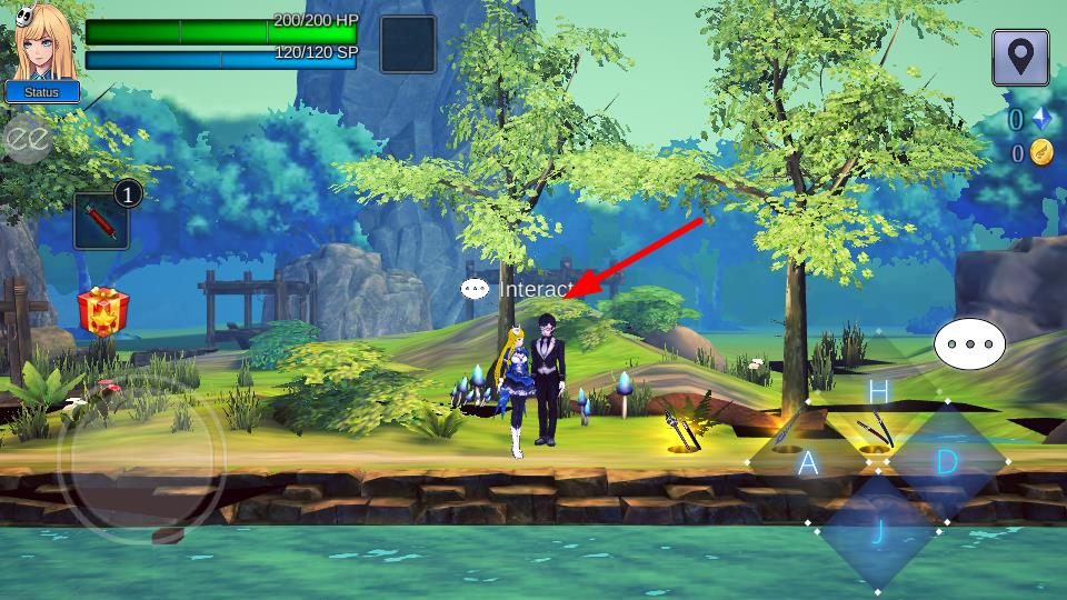1、點(diǎn)擊Interact的區(qū)域,可與NPC互動(dòng),觸發(fā)了游戲的任務(wù)或劇情,推進(jìn)了游戲的進(jìn)程。