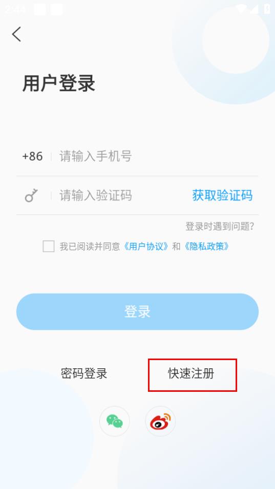 3、在用戶登錄界面,注冊賬號的話就點擊快速注冊。