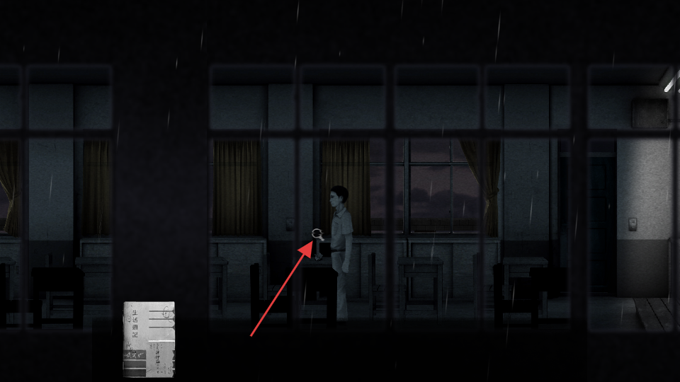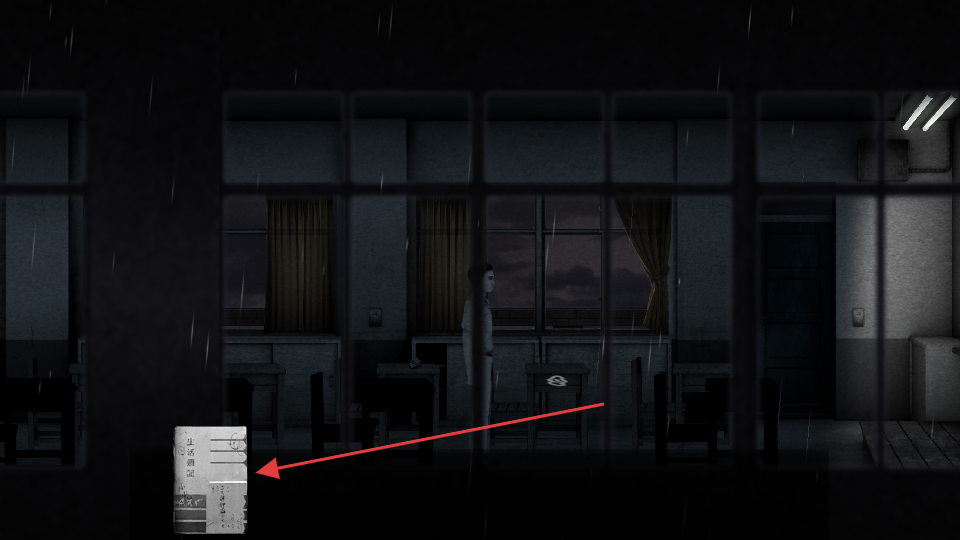 2、在雨夜教室場景中,留意左側(cè)的“生活周記”類物品,點擊進(jìn)行互動,收集線索推進(jìn)劇情。