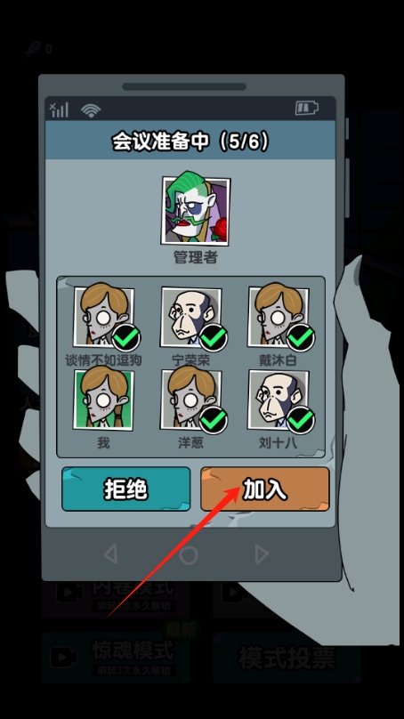 1、當(dāng)收到會議邀請時,可點擊加入按鈕參與游戲?qū)?,與其他玩家及管理者角色開啟對抗,這是進入游戲環(huán)節(jié)的關(guān)鍵操作。