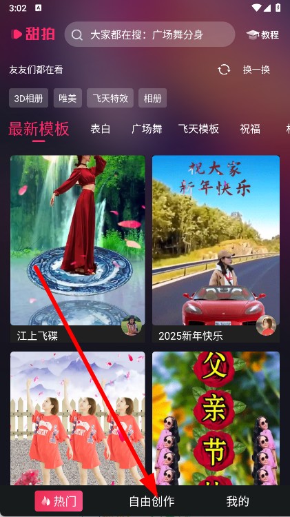 1、打開甜拍免費制作視頻,點擊底部自由創(chuàng)作選項。