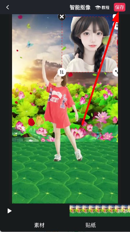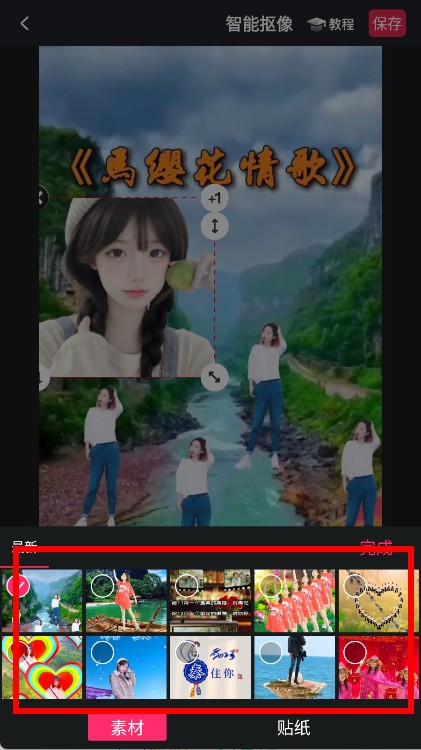 3、進入編輯頁面,在下方選擇進行添加,還能對人物圖像進行智能摳像等操作。