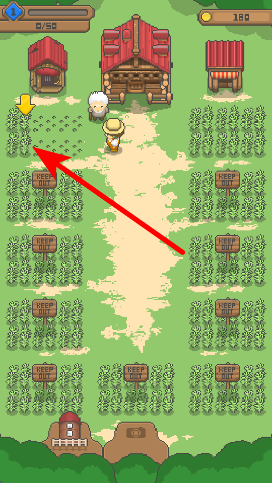 1、首先按照箭頭指引前往左側農(nóng)田區(qū)域,開始進行農(nóng)田相關的操作,為后續(xù)農(nóng)場經(jīng)營做準備。