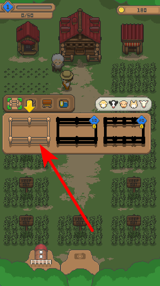 3、之后在彈出的界面里,選擇最左側的柵欄,準備在農(nóng)場中放置柵欄來規(guī)劃區(qū)域。