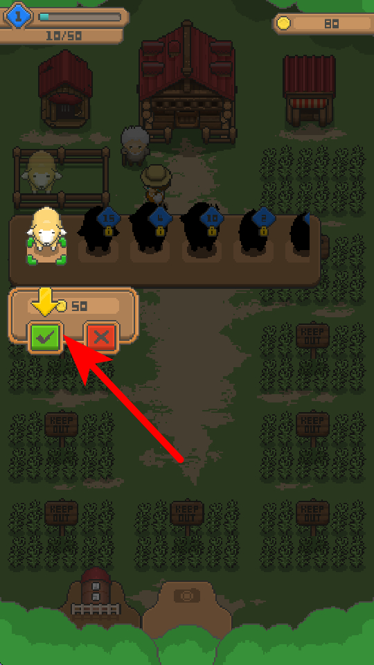 4、最后在選擇動物的界面,點擊花費五十金幣的選項并確認,即可獲得對應的動物來養(yǎng)殖。