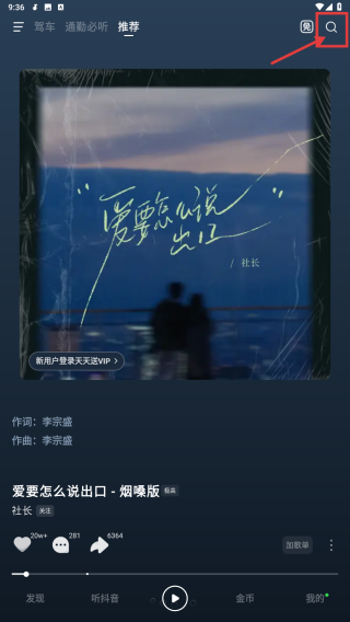 1、打開音樂(lè)類應(yīng)用,點(diǎn)擊右上角搜索圖標(biāo),進(jìn)入搜索頁(yè)面。