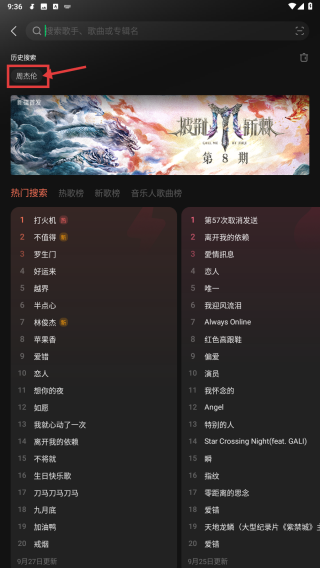 2、在搜索頁(yè)面的搜索欄中輸入周杰倫,觸發(fā)搜索結(jié)果展示。
