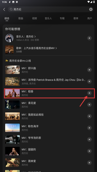 3、在搜索結(jié)果中找到目標(biāo)MV稻香,點(diǎn)擊播放該MV。
