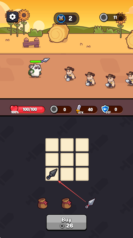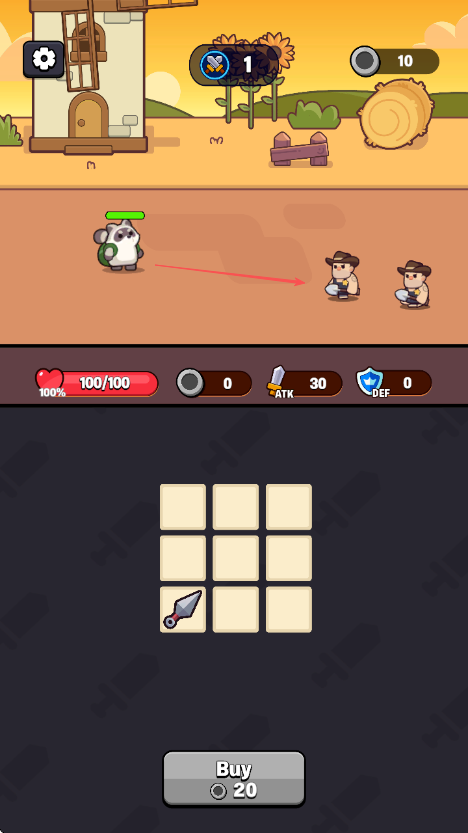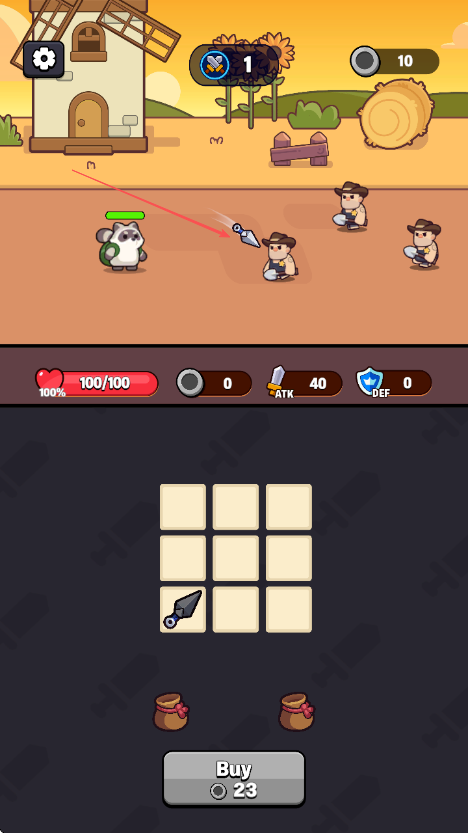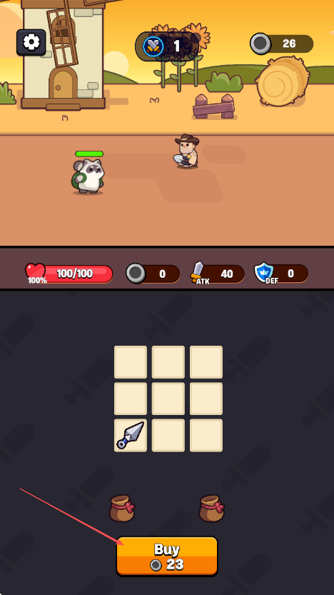 3、戰(zhàn)斗過程中,收集敵人掉落的資源如圓形貨幣,積攢足夠資源后點(diǎn)擊Buy按鈕購買道具或升級(jí)屬性。