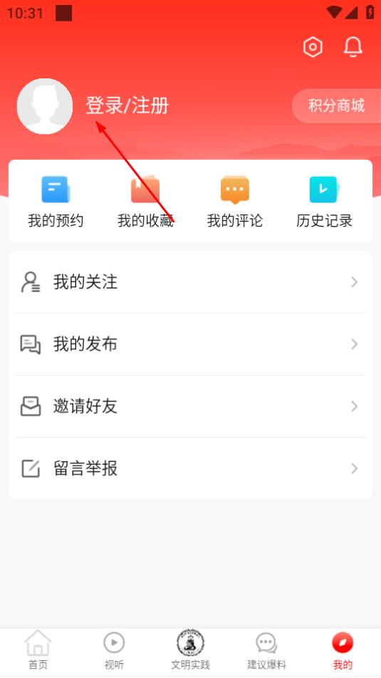 2、在我的頁面,點(diǎn)擊登錄注冊選項(xiàng),進(jìn)入登錄注冊界面。