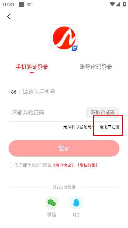 3、在登錄界面,若為新用戶,點(diǎn)擊新用戶注冊選項(xiàng)。