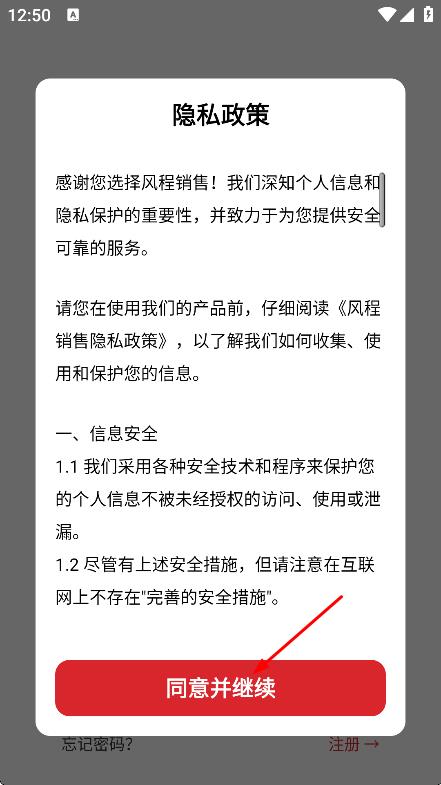 1、在隱私政策彈窗中,點(diǎn)擊同意并繼續(xù),進(jìn)入APP。