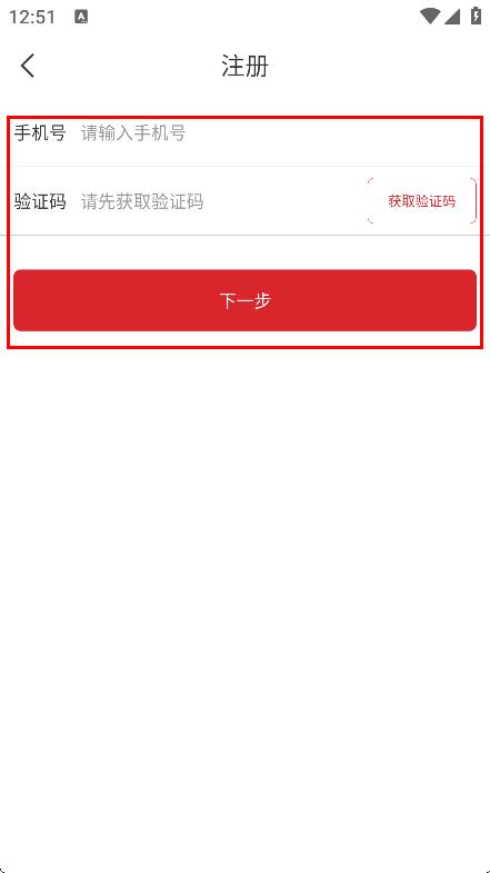 4、輸入手機(jī)號(hào)、驗(yàn)證碼后,點(diǎn)擊下一步,進(jìn)行注冊(cè)操作。