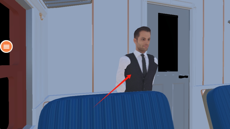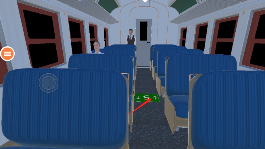 2、朝著箭頭指向的標(biāo)識區(qū)域移動,可以探索車廂的布局,尋找解謎線索或關(guān)鍵道具。