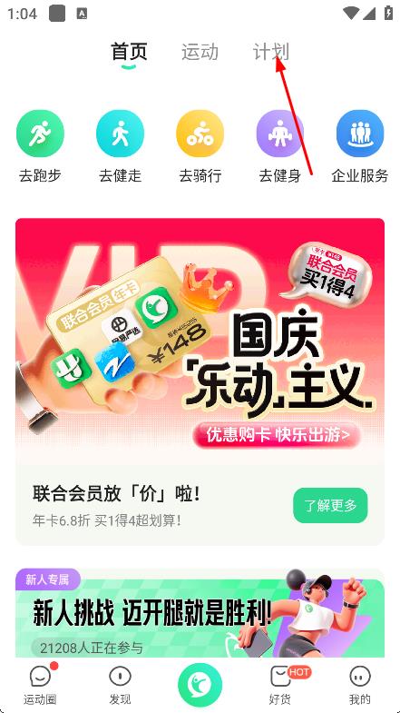 2、在咕咚運動主頁面,點擊旁邊的計劃,進入計劃頁面。