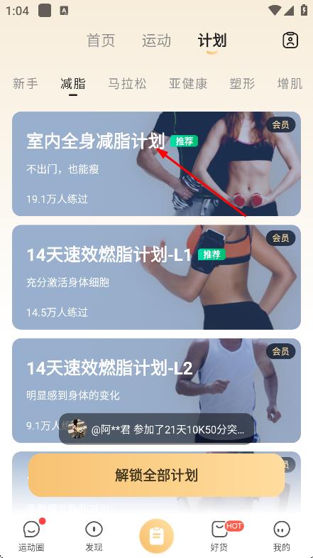 3、選擇想要的計劃,如全身減脂計劃,進入該計劃詳情頁面。
