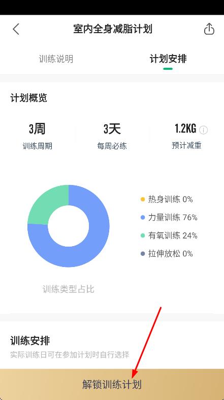 4、在詳情頁面,點擊解鎖訓練計劃,解鎖該訓練計劃。