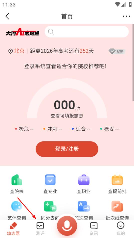 2、在大河AI志愿通頁面,點擊測評選項,進入測評中心。