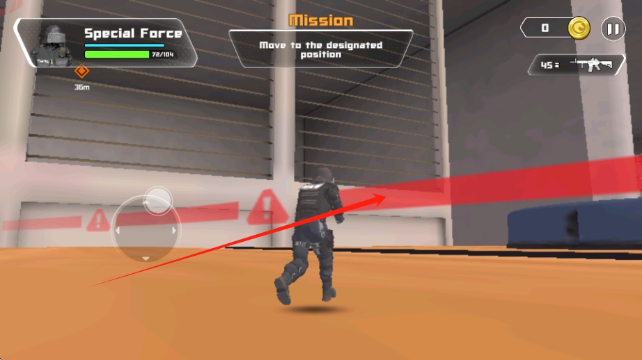 4、沿著箭頭指向的方向移動,可躲避障礙物或敵人攻擊,同時向指定位置前進(jìn),確保完成。