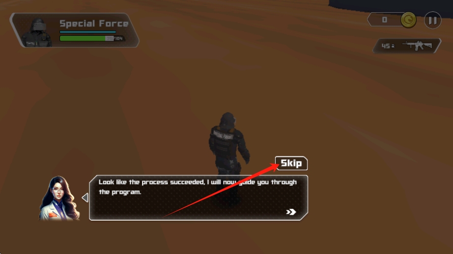 1、點擊Skip的按鍵,可跳過劇情介紹,直接進(jìn)入游戲的核心玩法環(huán)節(jié),快速的開始冒險。