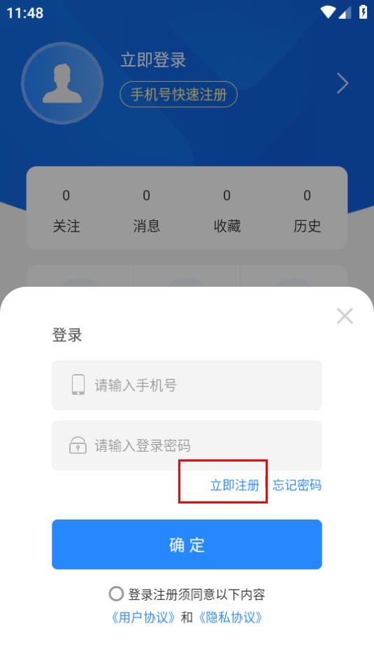 3、在登錄界面,點(diǎn)擊立即注冊選項(xiàng),進(jìn)入注冊界面。