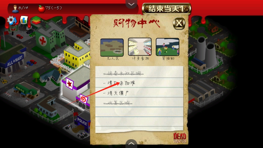 3、選擇清干雜物堆任務(wù),可清理購物中心的雜物,獲取資源解鎖新的區(qū)域,推進進程。