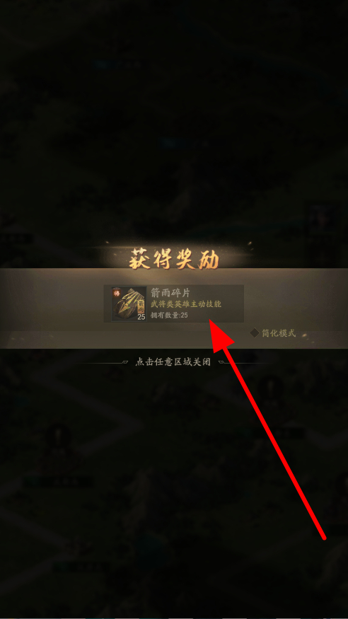 4、完成各類(lèi)任務(wù)或戰(zhàn)斗后,能獲取獎(jiǎng)勵(lì),像箭雨碎片等,這些獎(jiǎng)勵(lì)可用于提升武將技能等,增強(qiáng)實(shí)力。