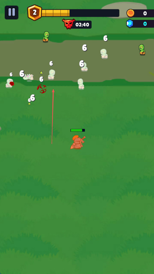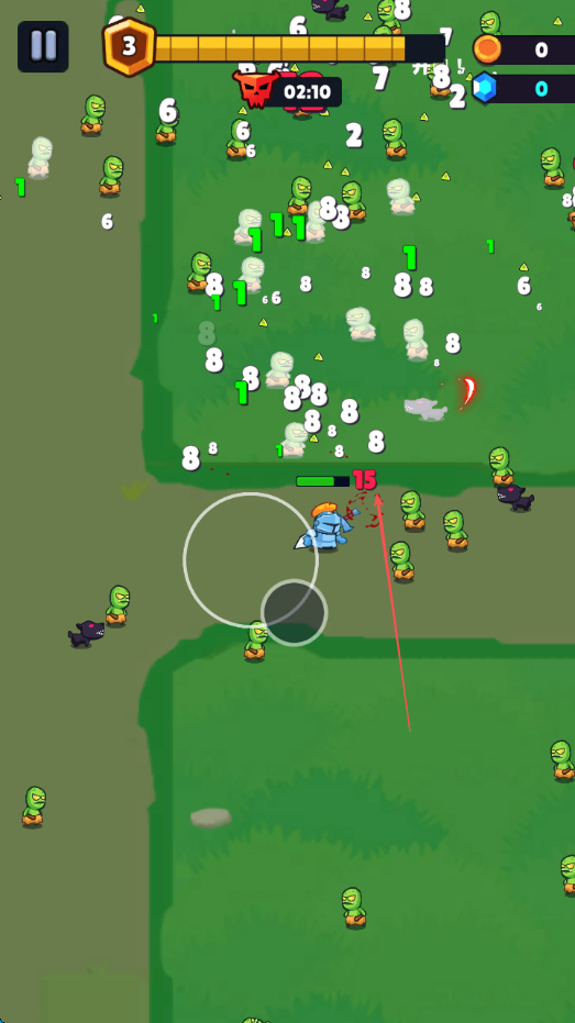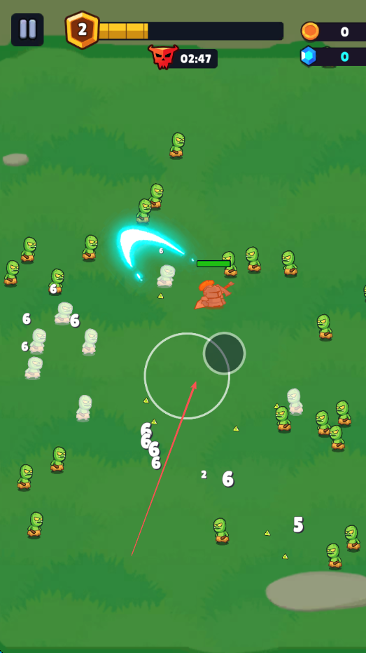 1、進(jìn)入游戲后,通過(guò)移動(dòng)角色躲避綠色小怪的攻擊,同時(shí)尋找攻擊機(jī)會(huì)。