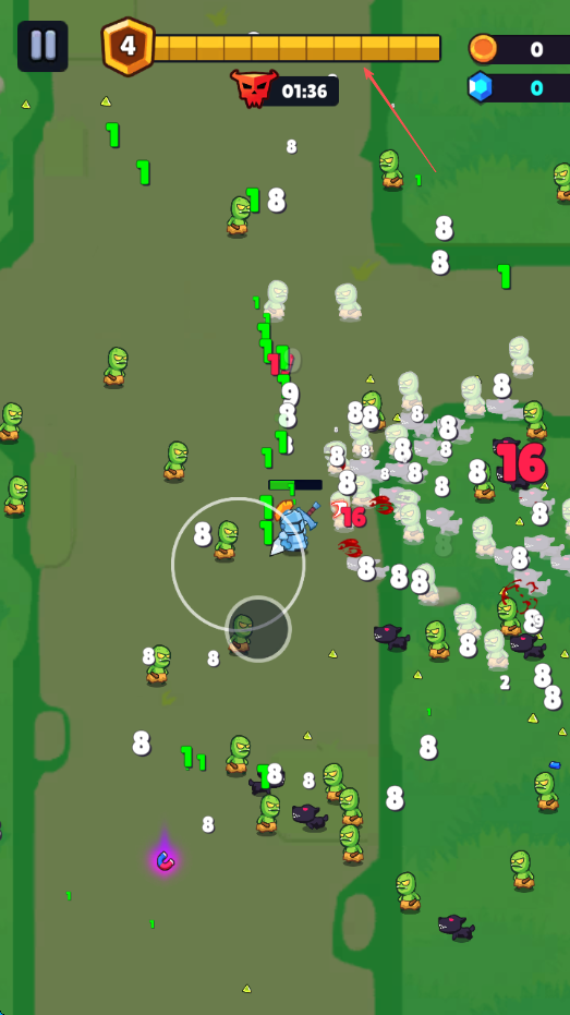 4、留意屏幕上方的進(jìn)度條,在限定時(shí)間內(nèi)擊敗足夠數(shù)量的小怪,推進(jìn)關(guān)卡。