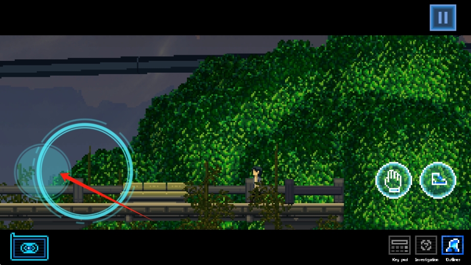 1、點擊左側(cè)的移動控制區(qū)域,可操控角色在場景中移動,探索地圖,發(fā)現(xiàn)線索和道具。