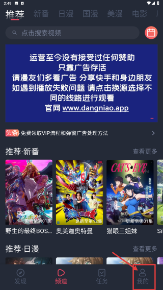 1、打開(kāi)動(dòng)漫類應(yīng)用,點(diǎn)擊底部我的選項(xiàng),進(jìn)入個(gè)人中心頁(yè)面。