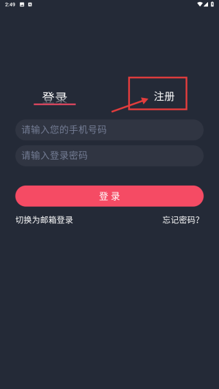3、在賬號(hào)操作界面,點(diǎn)擊注冊(cè)標(biāo)簽,切換至注冊(cè)頁(yè)面。