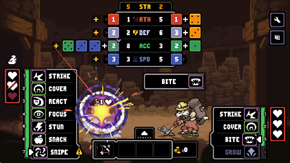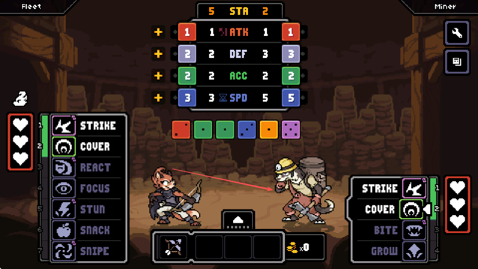 3、關(guān)注自身和敵人血量紅心標(biāo)識(shí),利用REACT,F(xiàn)OCUS等技能,提升戰(zhàn)斗優(yōu)勢(shì)與生存能力。