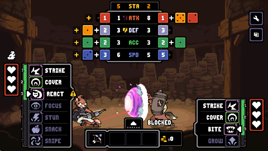 2、若敵人防御出現(xiàn)BLOCKED提示,調(diào)整策略,可嘗試使用COVER技能防御后再找時(shí)機(jī)進(jìn)攻。