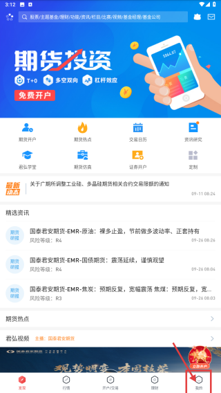 1、打開期貨投資類應(yīng)用,點(diǎn)擊底部我的選項(xiàng),進(jìn)入個(gè)人中心頁面。